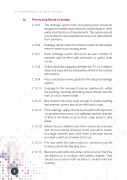 Code of Veterinary Practice For Poultry Processing Plant 8 b) Processing Waste Drainage 2.10.5 The drainage system from processing areas should be designed to enable rapid removal of wash down or other water from the oors of departments. The system should ensure effective and expeditious removal of plant ef uent from premises. 2.10.6 Drainage waste outlets should be provided to adequately remove waste in processing areas. 2.10.7 Each drainage waste should be at least 100mm in diameter and be tted with perforated or grilled drain covers. 2.10.8 Drainsshouldbeequippedwitheffective,P,UorSshaped deep seal traps and be adequately vented to the outside atmosphere. 2.10.9 Floors should be evenly graded to the trapped drainage wastes. 2.10.10 Drainage for the removal of viscera, feathers etc. within the packing, dressing and killing areas should take the form of a box channel drain. 2.10.11 Box channel should be wide enough to enable cleaning and internal corners should be effectively coved. 2.10.12 Floor drainage valleys should be provided with approved covers where necessary over walkways and the direction of ow of the drains must be from clean areas to dirty areas. 2.10.13 Where viscera, feathers and other wastes are removed from the processing premises to the save-all by means of a large diameter pipe, both ends of the pipe should be made rodent proof when not in use. 2.10.14 Pits and tanks into which blood is received must be located outside the bleeding area. 2.10.15 Blood pits and tanks should be constructed so that they are impervious to moisture and suitably drained. They should be provided with facilities to enable effective cleaning.