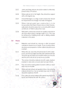 Part 1 | Minimum Standards of Construction of Poultry Processing Premises 3.3.2 Joints and xing devices should be sealed to effectively prevent entry of moisture. 3.3.3 Where wall are not of full height, they should be capped with a 45 degrees top. 3.3.4 Horizontal ledges occurring in wall construction should be sloped down at an angle of at least 45 degrees. 3.3.5 Where internal panel type construction is to be incorporated other than in freezer stores or blast freezers, wall panels should be placed on a concrete plinth raised a minimum of 150mm above oor level. 3.3.6 Wall panel construction should be suitably protected in any area where impact damage might occur. This may be achieved by installing bump rails or af xing suitable materials to the panel. 3.4 Floors 3.4.1 Materials used should be concrete or other accepted substances impervious to liquids. Floors in areas where emulsions are prepared or further utilized should be acid resistant. 3.4.2 Where tiles are used, they should be laid on a rm water- proof concrete foundation and the joints between the tiles should be grouted with acid resistant water-proof mortar and the joints should be as narrow as possible. 3.4.3 The surface should be relatively smooth, easily cleaned, resistant to wear and corrosion and non-slip in nish. 3.4.4 Floor should be evenly graded to waste outlets so liquid does not accumulate. 3.4.5 Where anti-slip surfaces are applied to oors, the surfacing material should be of an acceptable type and its nish should be relatively smooth. 3.4.6 Floor joints should be sealed with material impervious to liquids and nished at with the surface. 11