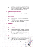 Part 1 | Minimum Standards of Construction of Poultry Processing Premises such a way that the cooling air ow is able to reduce or maintain the temperature of the product desired degree. 6.2.4 Product storage should be arranged in such a way that good air circulation can be achieved. Containers or storage racks should be not less than 150mm off the oor. 6.3 Speci c Construction Requirements The interior of each door should be provided with a mechanism to allow personnel to escape if personnel are accidentally locked inside. 6.4 Thermometers 6.4.1 A direct or remote thermometer should be provided to each chiller. 6.4.2 The temperature sensor should be in a position that indicates the actual room temperature. 6.5 Hose Points Suf cient hot and cold hose points should be provided to permit effective cleaning of all chillers. 6.6 Racking and Shelving 6.6.1 Where chillers are provided with racking or shelving for storing product, rust resistant material should be used. 6.6.2 Where necessary, shelving or trays to con ne drip from the product should be provided, with the bottom shelf not less than 300mm above the oor. 6.7 Drainage 6.7.1 Floors in chillers should be graded at a minimum of 1:100. 6.7.2 All oors should be graded to trapped oor drains located either in the chiller or outside the chiller door. 6.7.3 The defrost drain from cooling coils should be of adequate size to cope with the water from the melting ice on the 23