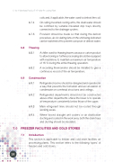 Code of Veterinary Practice For Poultry Processing Plant coils and, if applicable, the water used to defrost the coil. 6.7.4 On ceiling mounted cooling units, the drain water should be confined by suitable insulated drip trays directly connected to the drainage system. 6.7.5 Provision should be made so that during the defrost procedure, air circulating fans on the unit being defrosted can be switched off to prevent carryover of defrost water. 6.8 Thawing 6.8.1 A chiller used for thawing frozen carcass or carton product to allow boning or further processing should be equipped with machinery to maintain a maximum air temperature of 15°C during the entire thawing operation. 6.8.2 A recording thermometer should be installed to give a continuous record of the air temperature. 6.9 Condensation 6.9.1 Refrigerated rooms should be designed and operated in a way that prevents the formation and accumulation of condensate on overhead structures and ceilings. 6.9.2 Refrigerated departments should not be constructed above other departments unless the lower is to operate at temperature consistently below those of the upper. 6.9.3 Main refrigerant lines should not be routed through working areas. 6.9.4 Where forced draught unit coolers or air distribution ducting are located in the work area, both the drain trays and ducting should be insulated. 7.0 FREEZER FACILITIES AND COLD STORES 7.1 Introduction This section is applicable to freezer and cold store facilities on processing plants. This section refers to the following ‘types’ of freezers and cold stores: 24