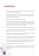 DEFINITIONS 1. “Slaughtering plant” means any place, kept or used for the slaughtering of any livestock for human consumption. 2. “Appliance” includes any machinery, implement, apparatus, work tool, instrument, utensil, block, vessel, container, receptacle or any other thing connected with a processing plant. 3. “Approved” means approved by Veterinary Authority. 4. “Residue” means any substance, including metabolites, remaining in poultry at the time of slaughter as the result, of treatment or exposure of the live poultry to a pesticide, hormone-like substance, growth promoter, antibiotic, tranquiliser , other therapeutic or prophylactic agent. 5. “By-product area” means any part of a plant in which poultry waste is treated. 6. “Carcass” means the whole dressed body of poultry after bleeding and dressing (the skeleton and attached musculature). 7. “Condemned” means a carcass or carcass part determined to be un t for use for human or pet food and requiring destruction. 8. “Contamination” means presence of objectionable matter, including substances or microorganisms that makes poultry meat unwholesome. 9. “Dressed” or “dressing” means the removal of feathers, head, feet, oil gland, viscera, and mature reproductive organs with or without the giblets. 10. “Edible” means intended for use as human food. 11. “Establishment” is any building(s) or area(s) in which food is handled after harvesting and the surroundings are under the control of the same management. viii